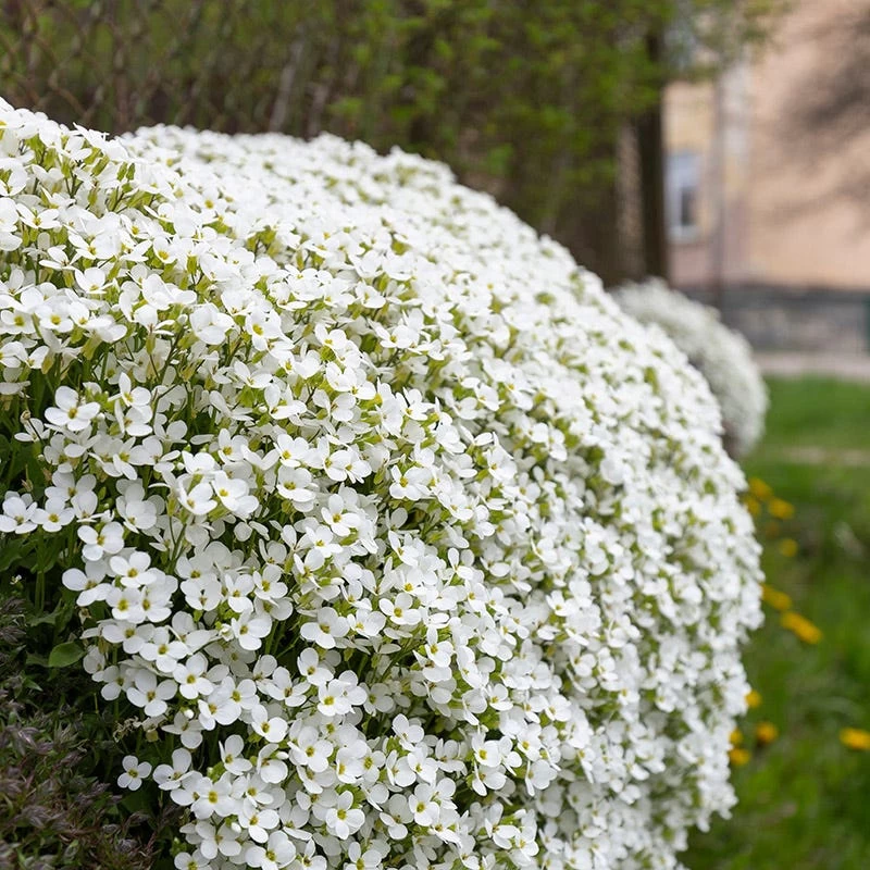 Aubrieta x Axcent™ ‘White’ (Rock Cress) is a perfect solution for rock gardens, along pathways, in between stones in a rock wall, and as a groundcover in sunny areas. The gray-green foliage is dense and compact. It is lovely trailing over a ledge and makes a nice addition to a container garden too. Deer resistant, it is drought tolerant once established. Native to Eurasia, this adaptable plant is not fussy about soil type as long as it drains well.